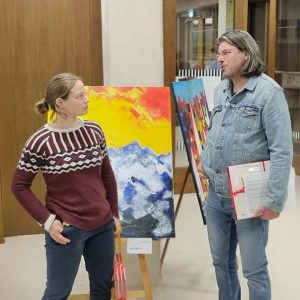 In the city of Neutraubling, that person is Elisabeth Sterr and Manfred Pfauntsch, the climate protection managers. This photo shows Elisabeth speaking with a resident after the city’s information evening on municipal heat planning – where we also launched our buy-in action as part of LIFE Street HP Reno.